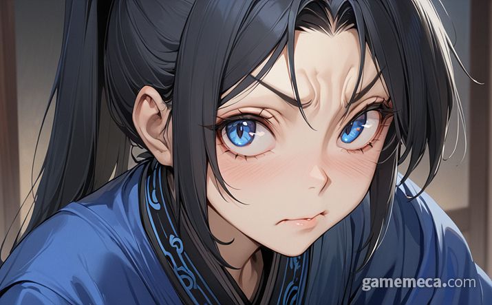 “무협(wuxia), 파란 무복을 입은 외모가 못생긴 소녀를 그려줘”