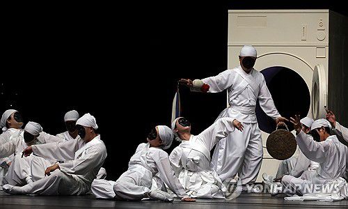 (전주=연합뉴스) 나보배 기자 = 전주세계소리축제가 개막한 14일, 한국소리문화전당 모악당에서 개막공연 '잡색X'가 무대에 올라 있다.