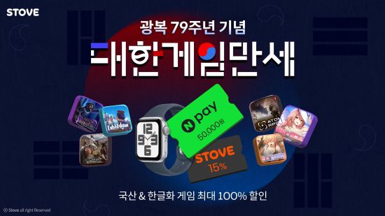 스마일게이트 스토브는 16일까지 3일간 제79주년 광복절을 맞아 '대한게임만세!' 이벤트를 진행한다고 밝혔다. 이용자는 국내 개발사의 게임과 한글화 게임을 저렴하게 구입할 수 있다.