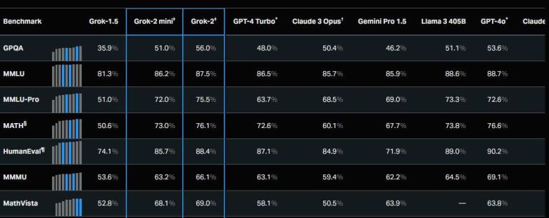 그록2와 다른 AI 모델 비교./xAI 블로그 캡처 |