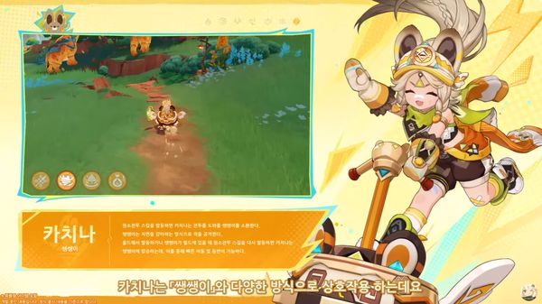 그 중 하나인 메아리 아이 부족 출신의 '카치나'는 4성 등급 바위 원소의 장병기 캐릭터다. 스킬을 통해 드릴처럼 생긴 탈것 '쌩쌩이'를 소환할 수 있다. 이를 활용해 빠르게 이동하거나 벽을 등반할 수 있으며, 지면을 강타해 적을 공격하는 것도 가능하다.