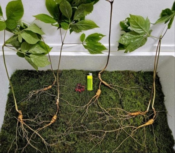 최고 수령 80년으로 추정되는 천종산삼이 경남 함양·산청 지리산 자락에서 발견됐다.