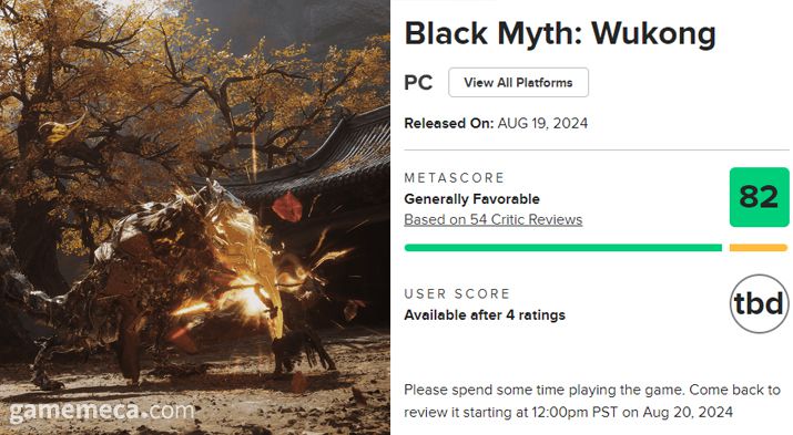 ▲ 검은 신화: 오공 PC 버전 메타크리틱 전문가 평점 현황 (사진출처: 스팀 공식 페이지/메타크리틱 공식 페이지) |