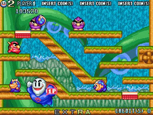 확실히 타이토의 귀욤 귀욤한 그래픽하고는 살짝 거리가 있습니다만.. 나름의 독특하고 유니크한 분위기로 오락실에서 인기를 얻게 되죠. 적을 쏴서 맞추면 적이 점점 눈덩이가 된다는 점과 해당 눈덩이를 굴리면 굴러가면서 다른 적들을 공격하거나 벽에 반동되기도 하는 등의 액션이 재미가 쏠쏠했었죠.