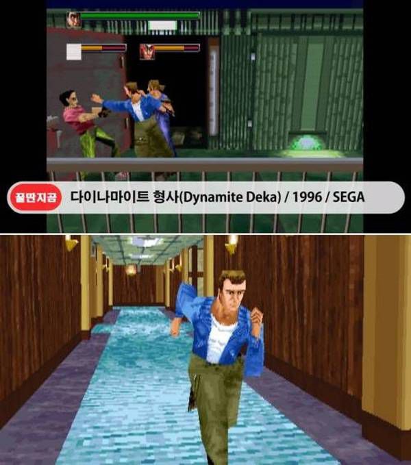검떠: 다이나마이트 형사는 1996년도에 세가에서 제작한 3D 벨트스크롤 게임이죠. 세가의 전용 기판인 STV용으로 개발된 게임이면서 벨트스크롤 계에 3D 시대를 열어준 게임이기도 합니다.