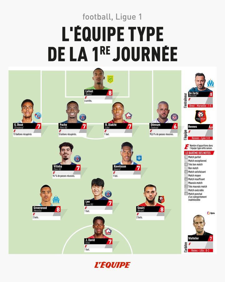 [서울=뉴시스] 프랑스 매체 '레퀴프'가 선정한 '2024~2025시즌 프랑스 리그앙 1라운드' 베스트11에 지목된 이강인. (사진=레퀴프 SNS 캡처) *재판매 및 DB 금지 |