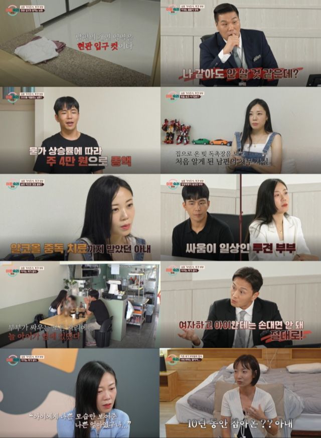 또 아내는 남편의 용돈을 일주일에 3만 원으로 제한하고, 위치추적 앱을 사용하는 것은 물론 잠든 남편의 핸드폰을 검사해 보는 이들을 경악하게 만들었다. 남편을 금전적, 신체적, 정신적으로 과하게 통제하는 아내의 모습에 서장훈은 "내 아내가 저러면 나 같아도 안 살 것 같다"라고 일침을 가해 사태의 심각성을 일깨웠다. 이에 아내는 "사기 결혼을 당했다"라고 억울함을 호소했다. 남편의 숨겨둔 빚 때문에 신혼 초 수차례 독촉장을 받았으며 반복된 거짓말로 신뢰를 잃었다고 밝힌 것.
