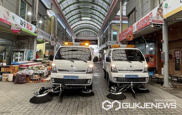 매포시장에서 운영하는 친환경 노면 집진차 모습(사진=단양군) |