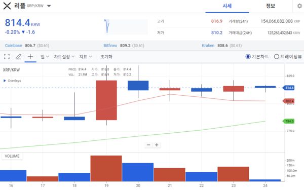 리플은 전주 동시간 대비 3.83% 상승한 개당 818.2원에 거래됐다. 이번주 초 800원대를 재돌파한 이후 닷새째 횡보 중이다. 또 솔라나도 전주 동시간 대비 4.33% 상승한 개당 20만3500원에 거래됐다. 이번주 초 미국 증권거래위원회의 솔라나 현물 ETF 반려 이후 19만원선 붕괴를 위협받던 솔라나는 지난 23일 반등에 성공하며 20만원대를 회복했다.