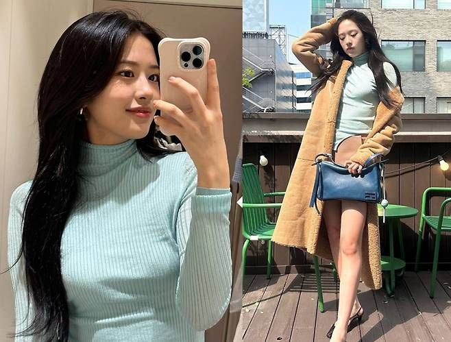 안유진은 하늘색 목폴라 니트를 착용하고 있어 청순하면서도 화사한 매력을 발산했다.사진=안유진 SNS |