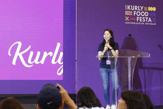 김슬아 컬리 대표가 서울 중구 동대문디자인플라자(DDP) 아트홀에서 열린 '2023 컬리 푸드 페스타'의 콘퍼런스에서 발언하고 있다. 사진 마켓컬리