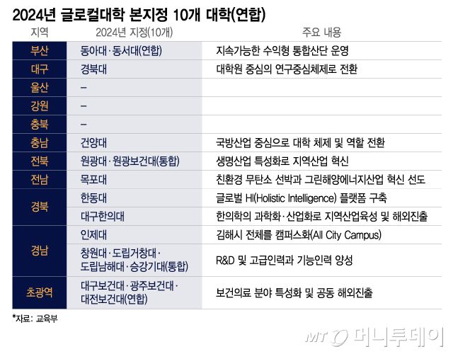 2024년 글로컬대학 본지정 10개 대학(연합)/그래픽=이지혜