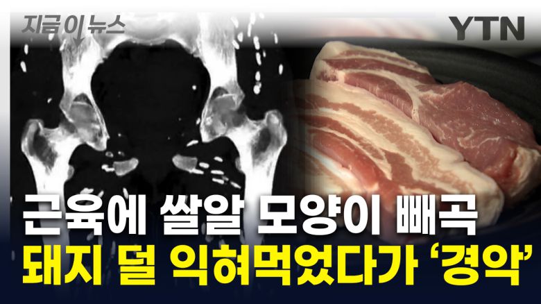 덜 익힌 돼지고기를 먹고 입원한 환자의 다리 근육 곳곳에 기생충이 박혀 있는 모습입니다.