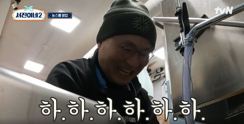 한편, 지친 나영석 PD를 대신해 또 다른 설거지 아르바이트생으로 제작사 에그이즈커밍 이명한 대표가 투입됐다. 생소한 광경에 적응 중인 직원들과 식기세척기를 사용하지 않고 손 설거지를 하는 이명한 대표의 아날로그적인 모멘트가 흥미롭게 펼쳐졌다.