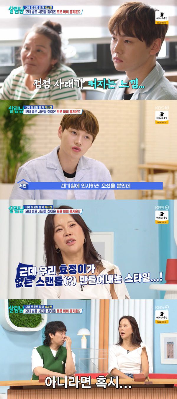 분노한 박서진은 "또 이상한 얘기 했냐"라고 노려봤다. 효정 양은 "눈빛에서 있을 수 없는 바이브가 나온다고 말한 게 다다"라고 말했다.