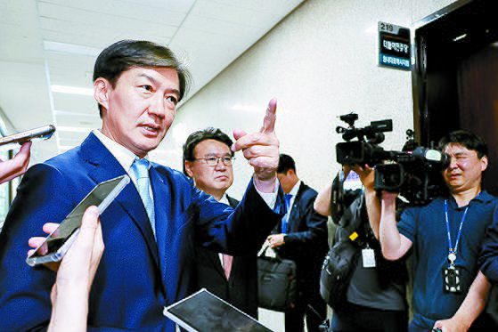 조국혁신당 조국 대표와 황운하 원내대표가 6월 3일 오전 서울 여의도 국회에서 조국혁신당에 배정된 본청 내 공간을 둘러보며 기자들에게 재배정 필요성을 설명하고 있다. 연합뉴스 |