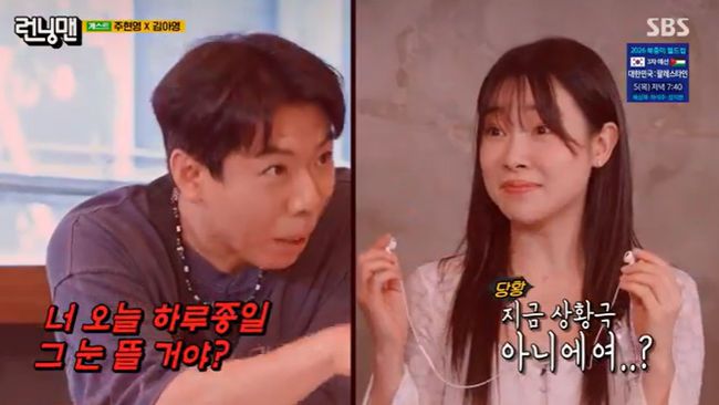 알고보니 지예은이 94년생으로 두 살 언니라는 것. 주현영은 96년생이었다. 지예은과 SNL 동기라는 김아영은 주현영을 향해 "근데 SNL선배님"이라 외쳤고, 지예은은 "나이는 2살 많아 런닝맨은 선배다"고 했다. 하지만 주현영은 "내가 먼저 나왔다 반년 선배"라고 말해 웃음짓게 했다.