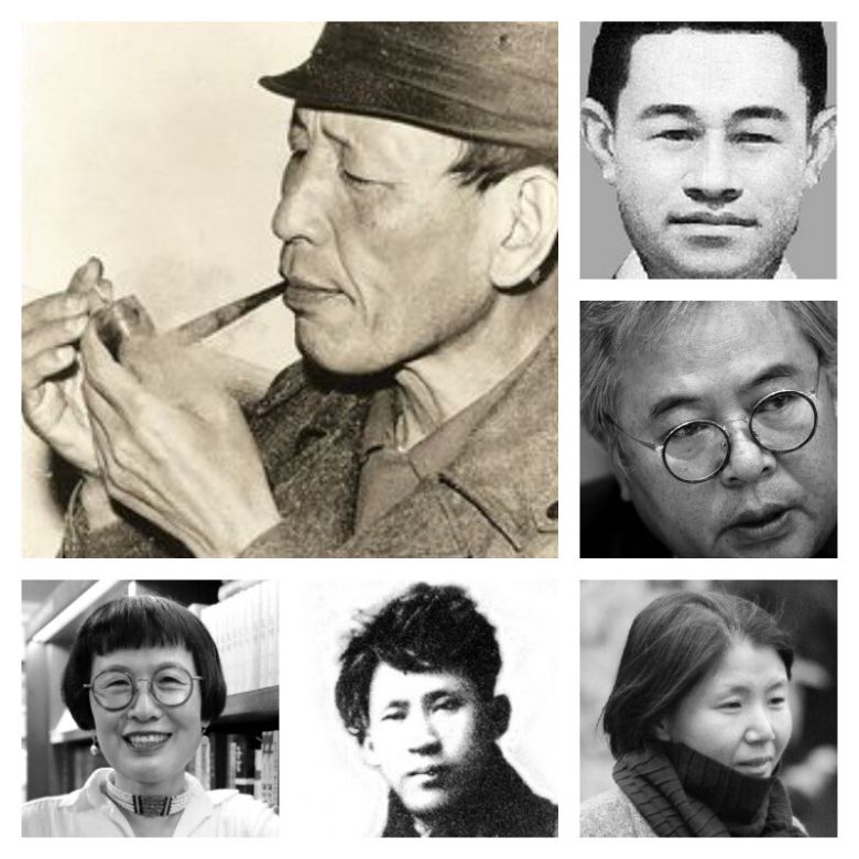 ‘한국 현대 시집 1세기’를 계기 삼아 한겨레가 창비 시선, 문학과지성사 시인선을 통해 시집을 출간한 적 있는 시인들 대상으로 설문조사를 벌인 결과, ‘가장 좋아하는 시인 5명’의 상위 그룹에 언급된 시인들. 위 왼쪽부터 시계방향으로 김종삼, 김소월, 황지우, 허수경, 이상, 김혜순. 한겨레 자료사진 |