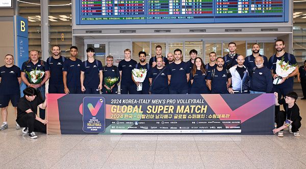 베로 발리 몬차는 지난 3일 슈퍼매치 출전을 위해 인천 제2여객터미널을 통해 입국했다. 지난 2024 파리올림픽에서 활약한 미국의 테일러 에이브릴(MB), 캐나다의 아투아 슈왈츠(OP), 브라질의 페르난두 크렐링(S) 등 세계적인 선수들을 비롯해 총 23명이다.