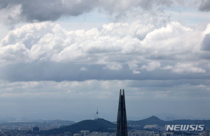 [광주(경기)=뉴시스] 김명년 기자 = 28일 오후 경기 광주시 남한산성에서 바라본 서울 도심 위로 먹구름이 끼어 있다. 2024.07.28. kmn@newsis.com |