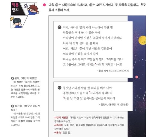 고전 시가 '동짓달 기나긴 밤을'과 윤하의 가사를 비교하는 내용도 있다.