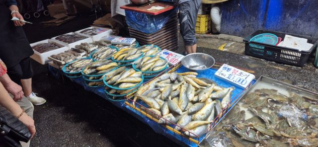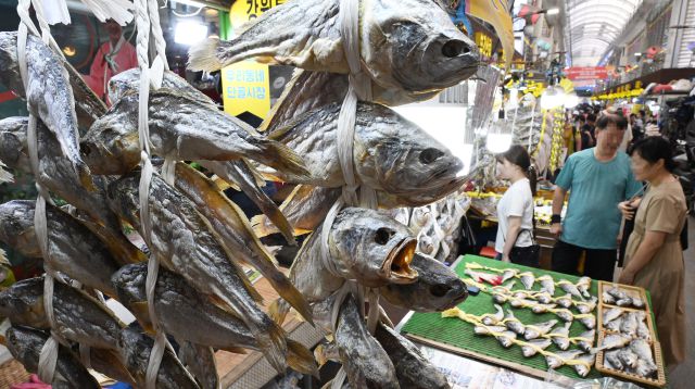 과일의 경우는 샤인머스캣 가격이 폭락하고 제수용으로 값비싼 사과와 배 품종이 아직 출하되지 않은 덕에 상대적으로 저렴했다. 남구로시장에서 35년째 과일장사를 했다는 충남상회의 박 모(71)씨는 “지금 나오는 사과는 부사가 아니라 홍로라 싼 것”이라면서 “조만간 값비싼 제수용 과일이 들어올 것”이라고 했다. 그는 “샤인머스캣은 8월 초 2kg 한 상자에 2만 5000원씩 했지만 공급이 늘어나 지금은 1만 2000원으로 떨어졌다”면서 “샤인머스캣만 떨어졌지 나머지는 추석이니 아무래도 좀 올랐다”고 전했다.
