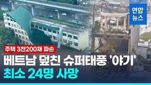 8일 베트남 현지 매체 VN익스프레스 등에 따르면 야기가 전날 오후 1시께 최대 풍속 시속 166㎞로 베트남 북동부 꽝닌성 해안에 상륙하면서 24명이 사망하고 약 200명이 다쳤습니다.