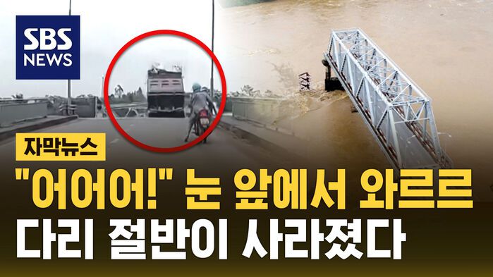 [자막뉴스] 눈 앞에서 사라진 트럭…슈퍼 태풍 '야기'에 다리 붕괴된 베트남
