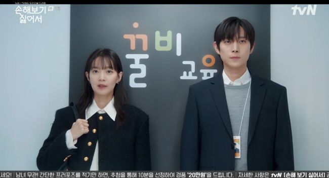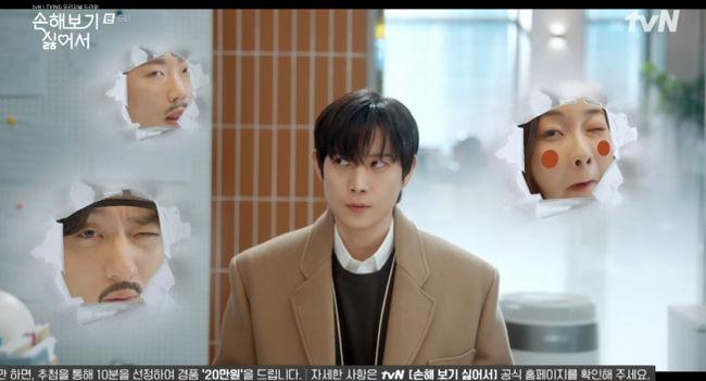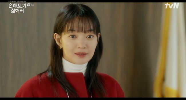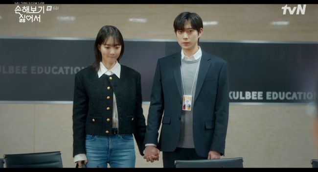 10일 방송된 tvN 월화드라마 '손해보기싫어서' 6화에는 직장에 결혼사실을 알린 손해영(신민아 분), 김지욱(김영대 분)의 모습이 그려졌다.