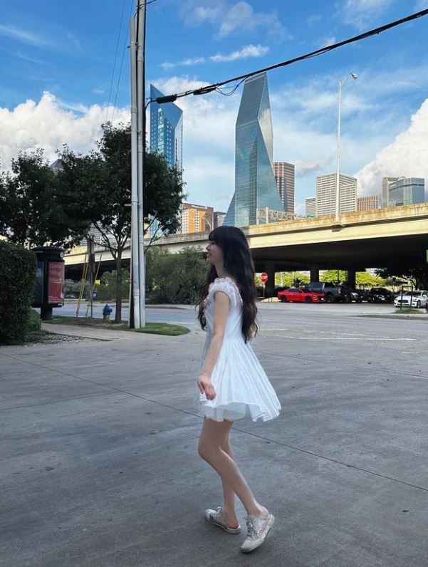 잠옷 아니지? 츄, 길 한복판 흰 원피스로 '러블리' 매력