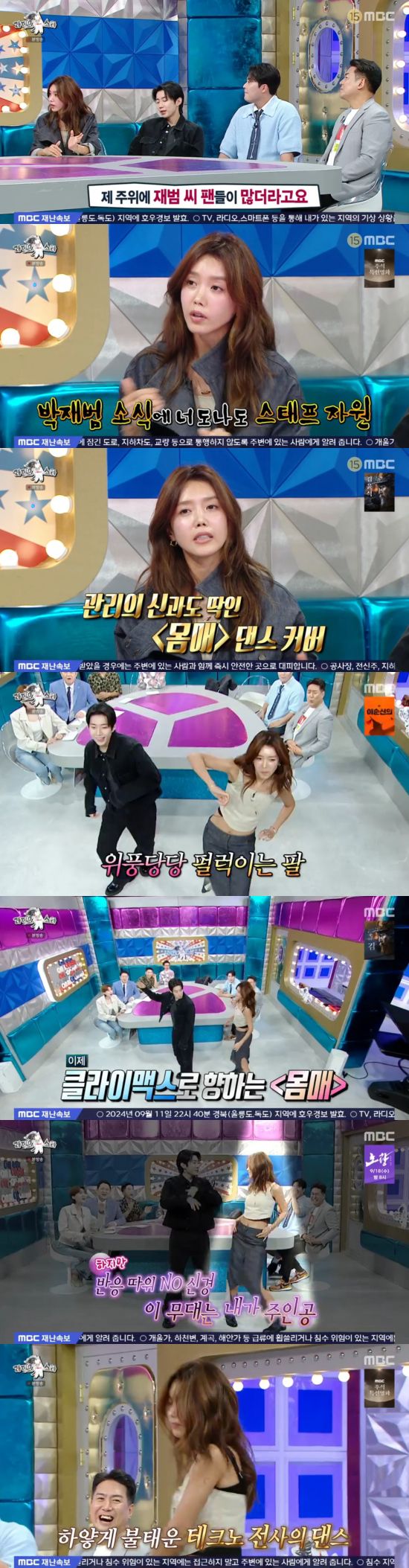 채정안은 박재범과 함께 '몸매' 댄스로 호흡을 맞췄고, 유세윤은 "'몸매' 춤이 90년대로 재해석될 줄 몰랐다"라며 감탄했다.
