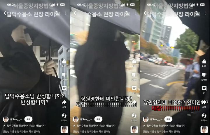 [서울=뉴시스] 허나우 리포터 = 아이브 장원영, 강다니엘 등 유명 아이돌 가수에 대한 각종 허위·비방 콘텐츠를 유포한 '탈덕수용소' 운영자 A씨(36)를 큰 소리로 호통치는 유튜버 모습이 담겨 큰 화제다.