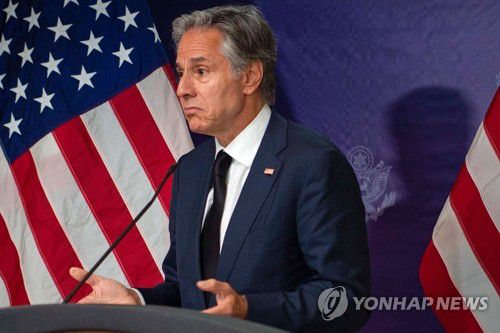 기자회견 하는 블링컨 |