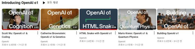 위 이미지를 보면 AI는 '컵을 들어 올릴 때, 딸기는 테이블에 남아 있거나 컵과 함께 이동할 수도 있겠네'란 전제를 내린 뒤, 과학적 법칙에 근거하여 최종적인 답을 도출했음을 알 수 있다. 결과적으로 이 같은 추론 문제는 굉장히 단순하지만, 심층연구나 토론이 필요한 문제에서는 질문자의 생각 정리 및 가설 검증, 보다 논리적인 프로그래밍 코드 생성 등에 유용하게 쓰일 것으로 기대된다. 오픈AI도 o1 공개와 더불어 공식 유튜브에 o1을 이용한 고도의 추론 문제 해결 예시와 사례 등을 중점적으로 제작해 공개했다.