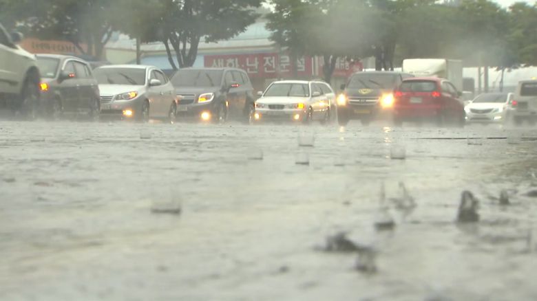 북동쪽에서는 건조한 공기가 내려오고 남서쪽에선 습한 공기가 올라오면서 성질이 다른 공기가 충돌하면서 강한 비구름이 발달한 것이 원인인데요.
