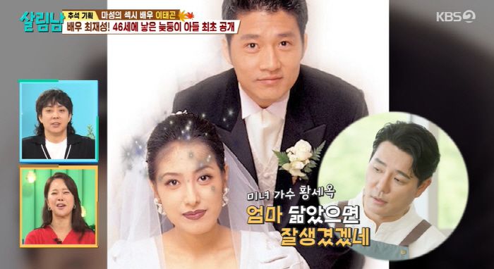 34세에 미녀 가수 황세옥과 결혼한 최재성은 "아들만 셋인데 엄마만 닮아서 다행"이라며 "난 안 닮는 게 낫다"고 농담을 던졌다.