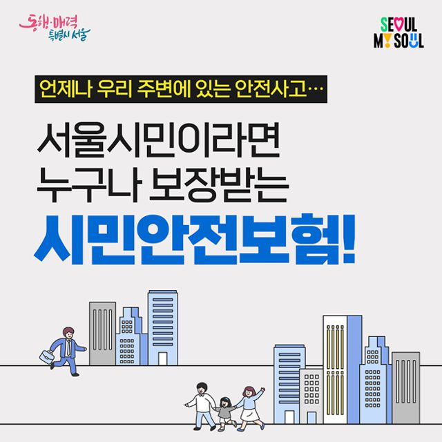 지자체별로 각각 가입하는 만큼 보험 갱신일이나 보장 항목이나 한도 등도 다르다. 서울시의 경우 화재·폭발·붕괴, 자연재해, 사회재난, 대중교통사고, 어린이·노인보호구역 내 교통사고 등 예상치 못한 사고로 사망·부상·후유장해를 입은 시민에게 최대 2,000만 원의 보험금을 지급한다.