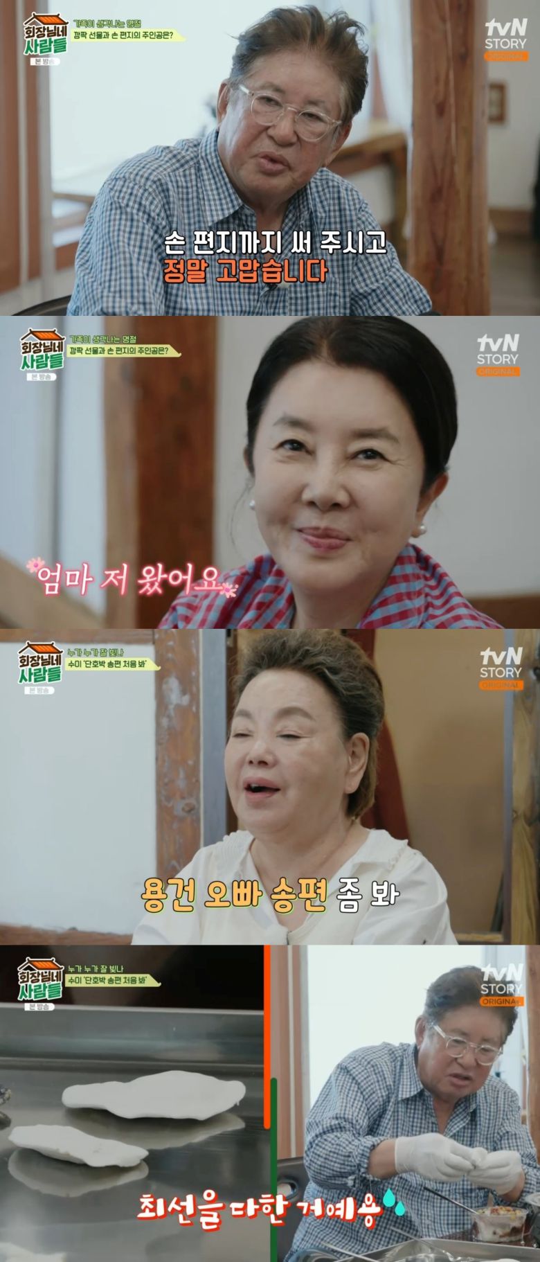 송편을 만들던 김수미는 김용건이 만든 송편을 보더니 "납작 만두 같다"며 빵 터졌고, 김영란도 "저건 좀 심하다"면서 나무랐다. 이에 김용건은 "최선을 다한 거다. 내가 먹으면 되지 않냐"고 반박해 웃음을 자아냈다.