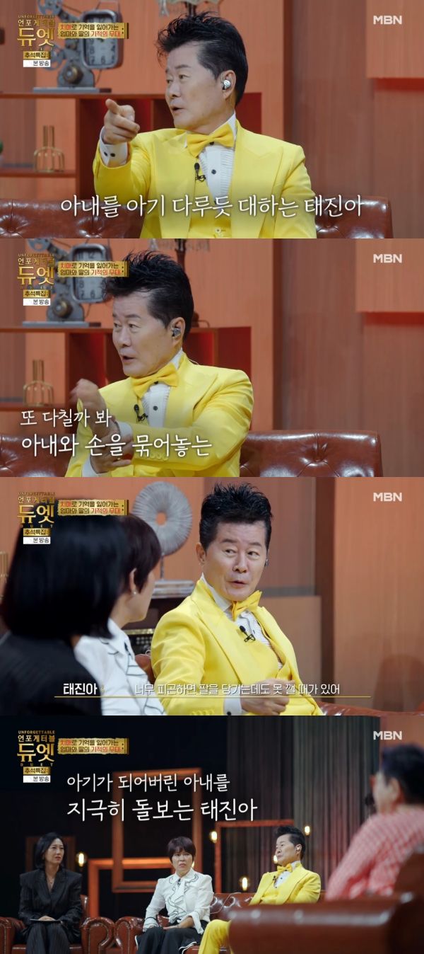 16일 첫 방송된 MBN '언포게터블 듀엣'에는 태진아가 치매를 앓는 아내를 떠올리는 모습이 그려졌다.