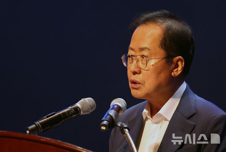 [대구=뉴시스] 이무열 기자 = 홍준표 대구시장이 15일 대구 북구 오페라하우스에서 열린 ‘제79주년 광복절 경축식’에서 경축사를 하고 있다. 2024.08.15. lmy@newsis.com |