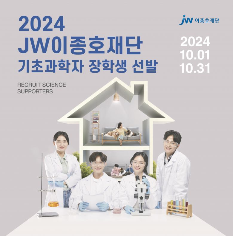 [헤럴드경제=손인규 기자]JW중외제약 공익재단 JW이종호재단이 기초과학 분야 연구자들을 위한 주거비용 지원사업인 ‘2024 기초과학자 장학생’을 오는 10월 31일까지 모집한다고 19일 밝혔다.