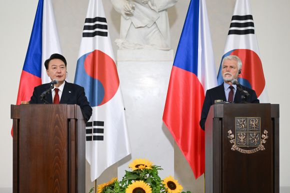 윤 대통령과 파벨 대통령은 러시아와 북한의 군사 협력을 ‘불법 협력’이자 ‘유럽과 인도·태평양 지역 안보에 대한 공동의 위협’으로 규정하고 “한국과 체코가 연대해 국제 무대에서 이러한 위협에 굳건하게 맞서 대응할 필요가 있다”고 의견을 모았다고 김 차장은 전했다.