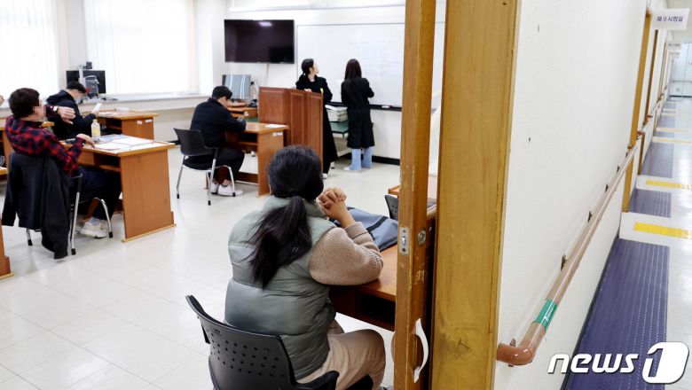 국가공무원 9급 공개경쟁채용 필기시험이 치러진 23일 서울 용산구의 한 시험장에서 수험생들이 시험 시작을 기다리고 있다. (인사혁신처 제공) 2024.3.23/뉴스1 |