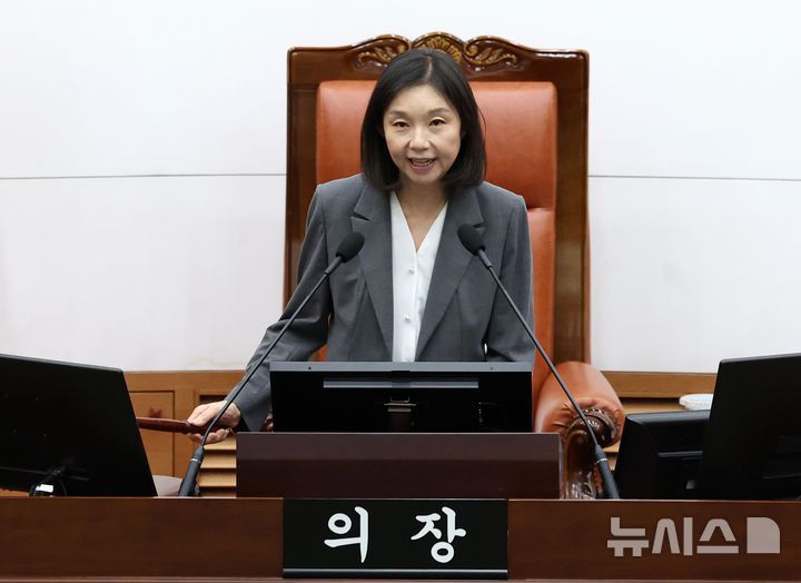 [서울=뉴시스] 이영환 기자 = 최호정 서울특별시의회 의장이 지난달 28일 오전 서울 중구 서울특별시의회에서 열린 제326회 임시회 제2차 본회의에서 개의를 선언하고 있다. 2024.08.28. 20hwan@newsis.com