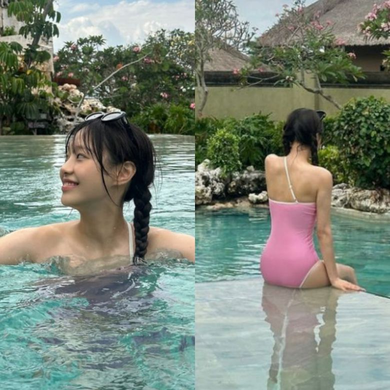 공개된 사진들 속에서 츄는 등 뒤가 훤히 드러나는 핑크색 바디슈트를 착용한 채 물놀이를 즐기고 있는 모습. 특히 귀여운 비주얼에 반전 매끈한 몸매를 과시하고 있어 눈길을 끈다.