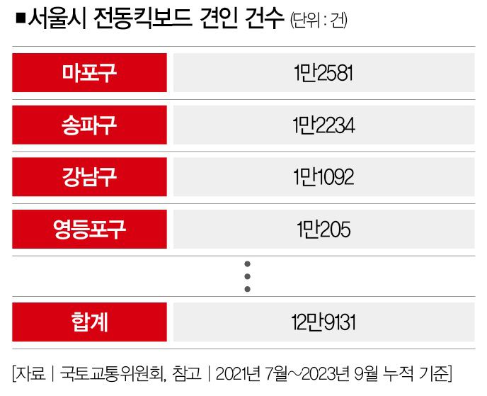 이곳에 주·정차할 경우 즉시 견인되며 전동킥보드 소유주에게 견인료(4만원)와 보관료(30분당 700원) 명목으로 최대 54만원까지 부과됩니다. 서울시가 이 제도로 적발한 전동킥보드 불법주차 건수는 어마어마합니다. 지난해 10월 최인호 더불어민주당 국회의원(당시)이 서울시로부터 받은 자료에 따르면, 견인제도를 시행한 2021년 7월부터 지난해 9월까지 서울시가 견인한 전동킥보드 건수는 12만9131건에 달합니다.