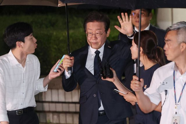 ▲지난 대선 과정에서 허위 발언을 한 혐의로 기소된 더불어민주당 이재명 대표가 20일 오후 서울 서초구 서울중앙지방법원에서 열린 공직선거법 위반 1심 결심 공판을 마치고 법원 청사를 나서며 지지자를 향해 손을 흔들고 있다. ⓒ연합뉴스