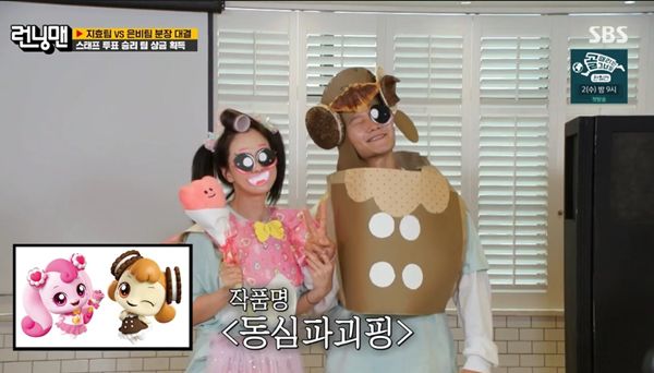 이날 유재석 팀은 하츄핑, 샌드핑으로 양세찬 팀과 분장 대결을 펼쳤다. 하츄핑을 맡은 송지효는 비슷한 소품을 구해 변신하기 시작했다.