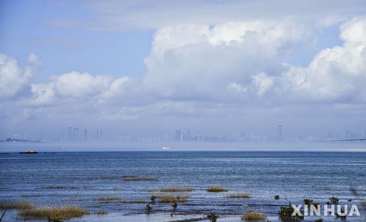 [진먼=신화/뉴시스] ??중국 단체 관광객의 대만 최전방 도서인 진먼다오 방문이 재개됐다. 코로나19 팬데믹으로 중국인 관광이 중단된 이후 약 5년 만이다. 사진은 진먼 하구에서 바라본 샤먼 모습. 2024.09.23 |