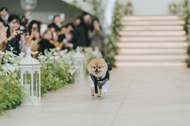 지난 3월 올려진 채모(28)씨의 결혼식에도 헤링본 정장을 갖춰 입은 ‘지구(4세·포메라니안)’가 라이언킹 OST에 맞춰 등장했다. 사회자는 “지구가 놀라지 않도록 환호성이나 큰 박수 대신 따뜻한 눈빛과 가벼운 박수로 맞이해 달라”고 안내했다. 채씨는 “결혼식 사진이나 영상도 부모님과 지구 위주로 찍었다”고 했다.